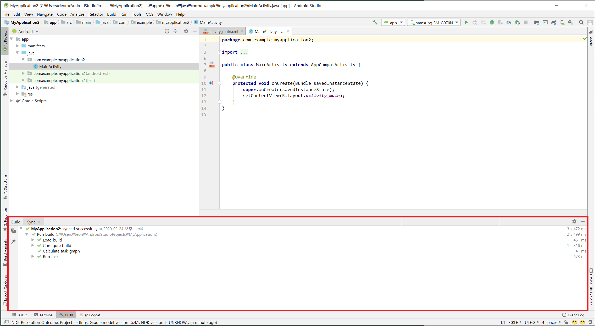 5) 처음 프로젝트를 생성하게되면 하단 메뉴의 Build 부분에서 자동 다운이 발생하는대 약 3분정도 소요