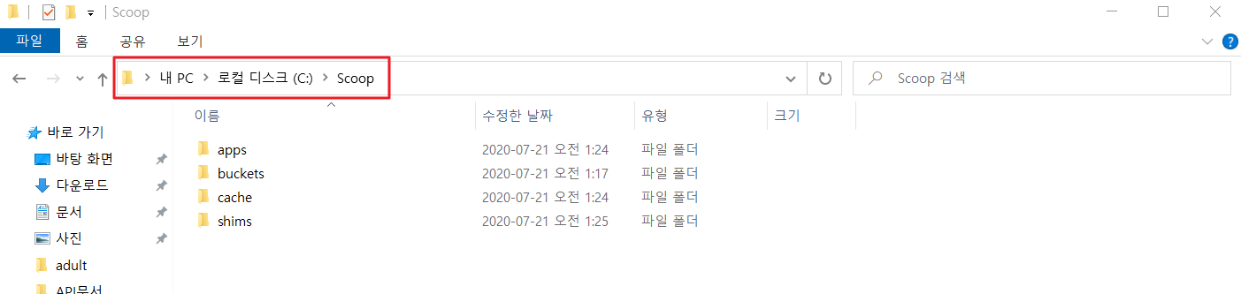 C드라이브에 Scoop이 생성된것을 확인할수 있다